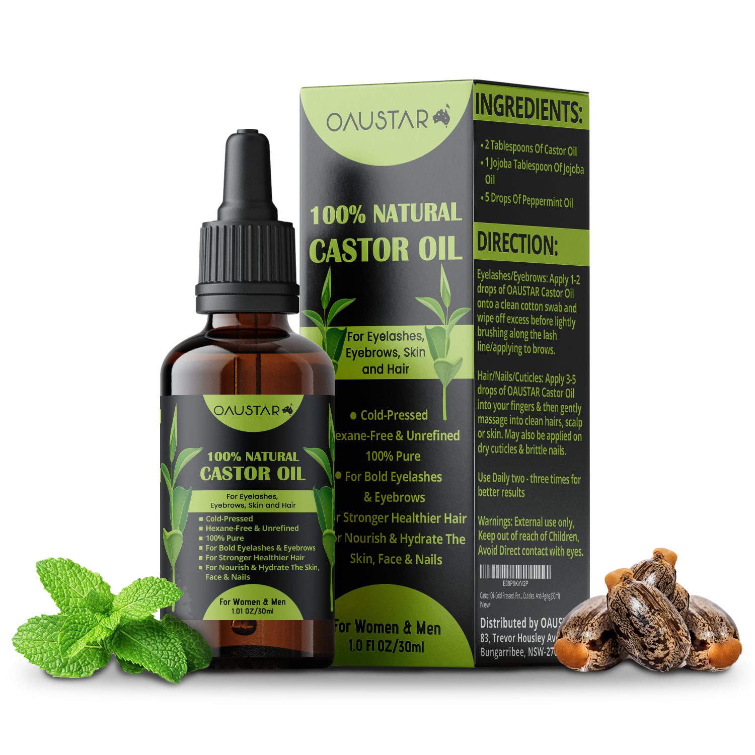 OAUSTAR Castor Oil is 100% Pure & Natural Cold-Pressed, Unrefined Castor Oil. No chemicals or preservatives. OAUSTAR Castor Oil has multiple benefits such as Nourish Conditioning for Hair Care, Conditions Eyebrows & Eyelashes, Anti-Aging & Face Moisturizer, Nails & Cuticles.